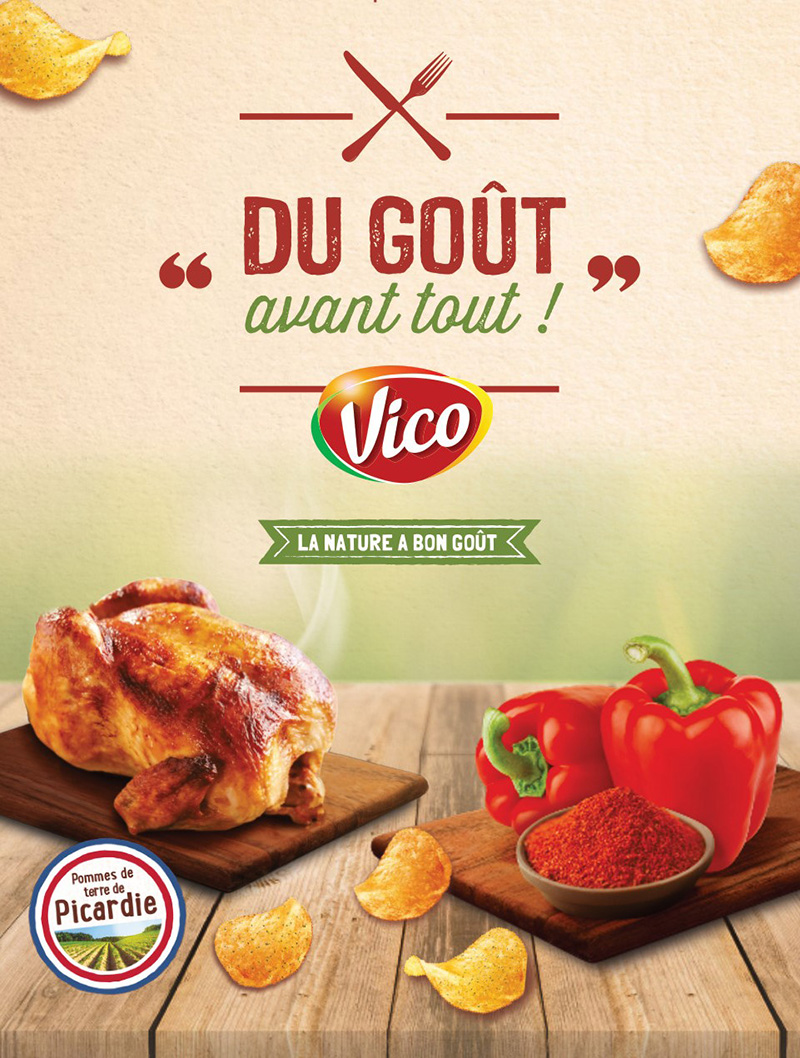Pour accompagner les beaux jours, Vico propose depuis 2021 une offre de chips lisses aromatisées avec les saveurs préférées des Français (saveurs Barbecue, Poulet rôti, et Chèvre chaud & herbes). Complétée cette année avec l’incontournable arôme Paprika Fumé, cette gamme surprend par une explosion de saveurs confondantes, grâce à une nouvelle technologie d’aromatisation autorisant un maximum de goût, avant tout !