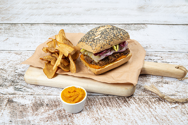 Vintage burger, chips de panais et ketchup de carottes