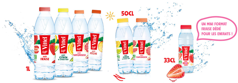 Sur l’année 2020, Vittel® Up s’est positionnée comme l’une des marques les plus dynamique du marchés des eaux plates aromatisées. 1er contributeur aux gains valeur pour les eaux aromatisées transparentes (3) , Vittel® Up représente une offre en phase avec les attentes des consommateurs à la recherche de nouveautés fraîcheur et fruitées.