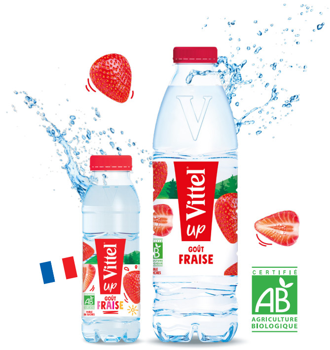VITTEL® MET LA FRAISE EN BOUTEILLE AVEC SA NOUVELLE EAU MINÉRALE NATURELLE AROMATISÉE : VITTEL® UP GOÛT F