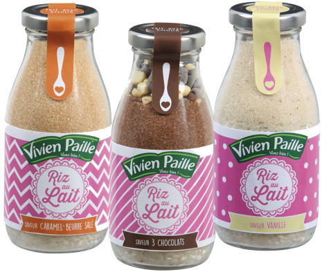 Ces petites bouteilles en verre sont composées d’une couche de riz spécial dessert, de sucre, et de bons ingrédients pour compléter le tout : des petits morceaux de chocolats, des grains de vanille ou de véritables caramels au beurre salé !