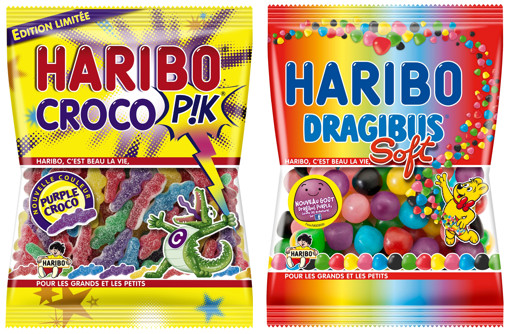 En 2015, HARIBO P!K et DRAGIBUS nous proposent un nouveau style avec leurs deux nouveautés CROCO P!K VIOLET et DRAGIBUS VIOLET, qui vont en faire fondre plus d’un ! Le violet, nouvelle couleur tendance et mode va se retrouver dans vos looks, votre déco, votre shopping,…pour vivre une saison colorée, fun,…et surtout gourmande !