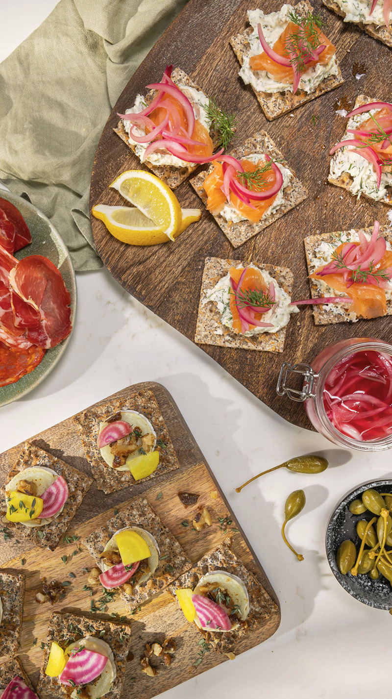 Une alliance savoureuse et croustillante entre le fondant du fromage frais, la fraîcheur du saumon et le peps des pickles, rehaussée par la texture unique des graines de chia pour une pause gourmande et équilibrée.