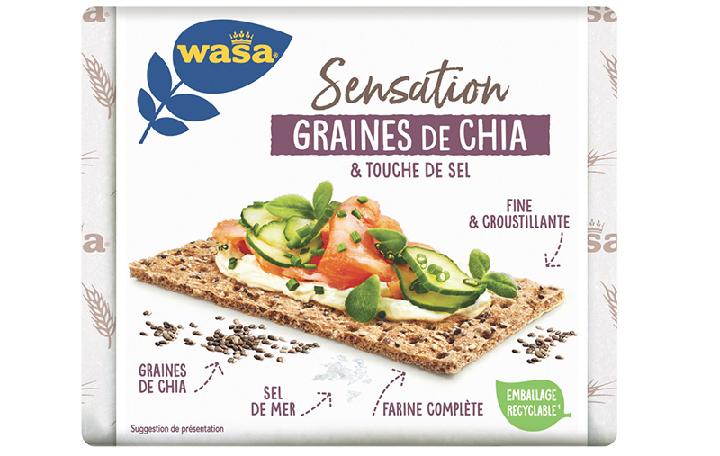 Les tartines Wasa® Sensation Graines de Chia sont composées de farine de seigle, graines de chia et sel marin. Elles se prêtent parfaitement à des associations savoureuses comme avec un houmous de carottes rôties, des œufs brouillés ou du beurre de cacahuète et des fruits. Et pour les afficionados de Wasa®, la référence Graines de Chia se déguste également seule pour une petite pause gourmande.
