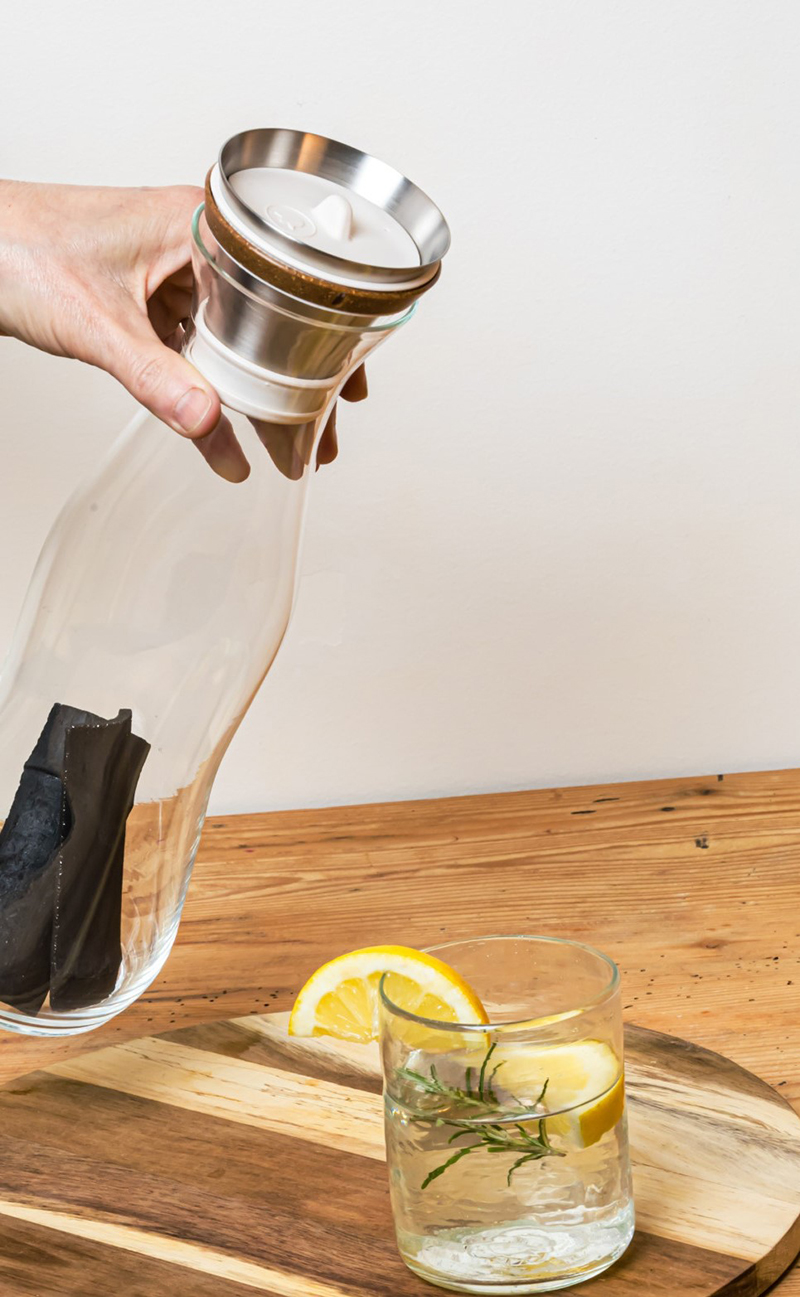 Le charbon de bambou offre une alternative naturelle efficace et durable aux cartouches présentes dans les carafes filtrantes classiques. Ses propriétés exceptionnelles permettent de purifier en 1h seulement l’eau du robinet. Il réduit les impuretés présentes dans l’eau courante telles que toxines, métaux lourds ou chlore pour l’enrichir en minéraux bons pour notre corps : magnésium, calcium et potassium. Elle retrouve ainsi rapidement et simplement son meilleur goût et toutes ses vertus. Les charbons de bambou ont la capacité de filtrer jusqu’à 1OO litres d’eau avant d’être déposés au compost ou comme engrais au jardin. Un retour simple vers la nature et sans impact environnemental !