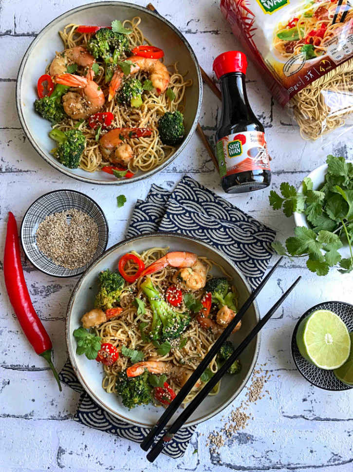 Les nouilles aux œufs Suzi Wan® permettent de réaliser de nombreux plats asiatiques. Vous pouvez les cuisiner au wok ou à la poêle avec une sauce à cuisiner Suzi Wan® et en y ajoutant quelques morceaux de poulet et/ou de légumes. Faites plaisir à toute la famille !