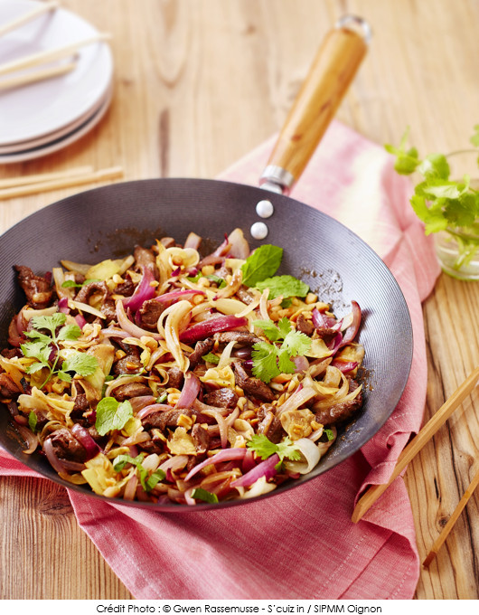 Astuce saveur : parsemer le plat de feuilles de coriandre et de menthe hachées et/ou de cacahuètes grillées concassées.