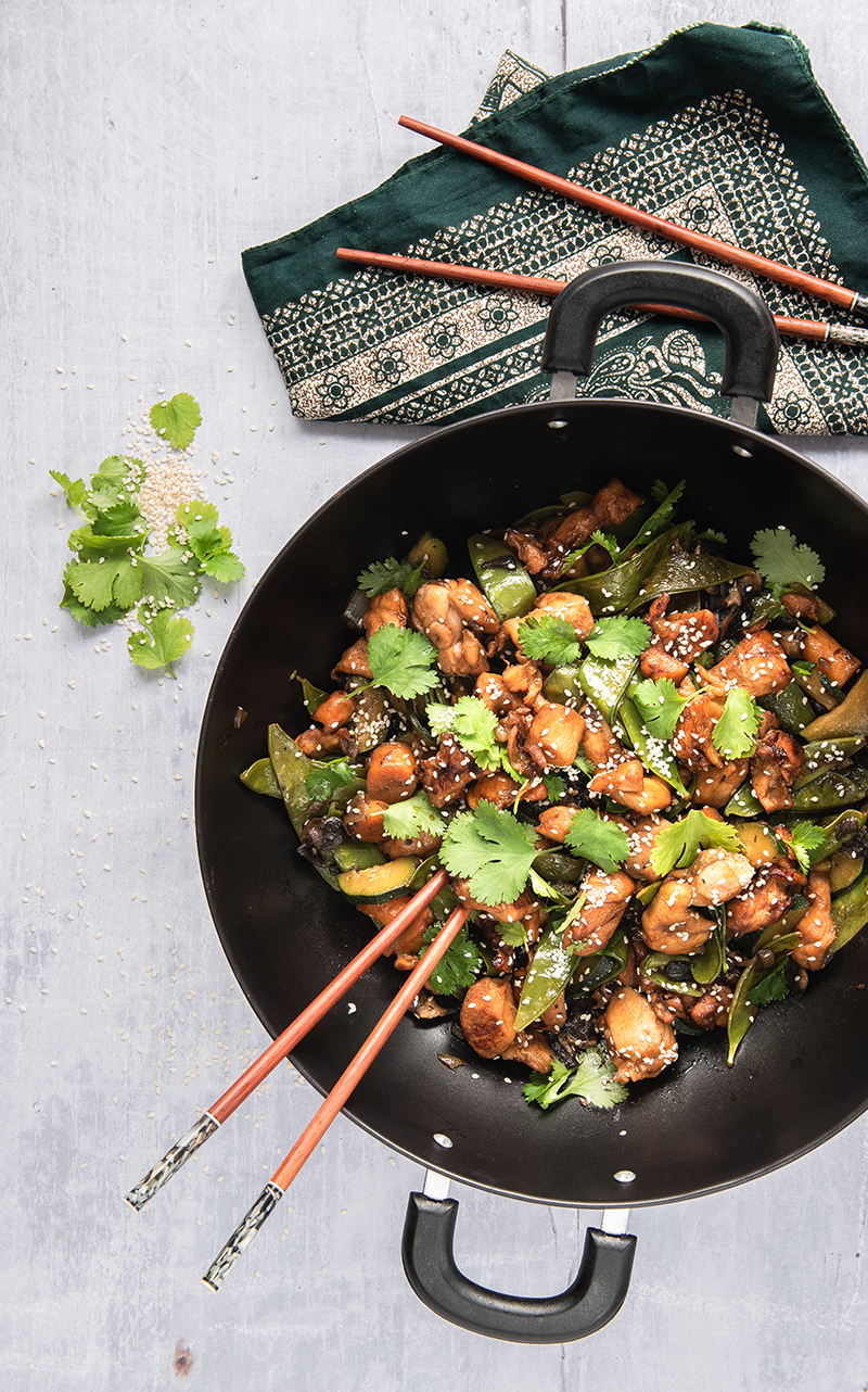 Réalisez cette recette en remplaçant l’oignon et les légumes par des bouquets de brocolis, de l’ail et des cacahuètes.
