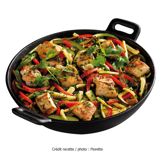 3• Ajouter le Duo Coriandre & Ciboulette, préalablement ciselées, et remuer. Puis remettre les morceaux de poulet et laisser cuire à feu doux pendant 15 min.