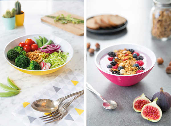 Au menu des réjouissances 3 formats de bols aux couleurs « pop » pour chaque repas :